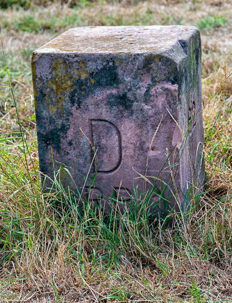 Grenzstein im Weinberg zwischen Deutschland und Frankreich.