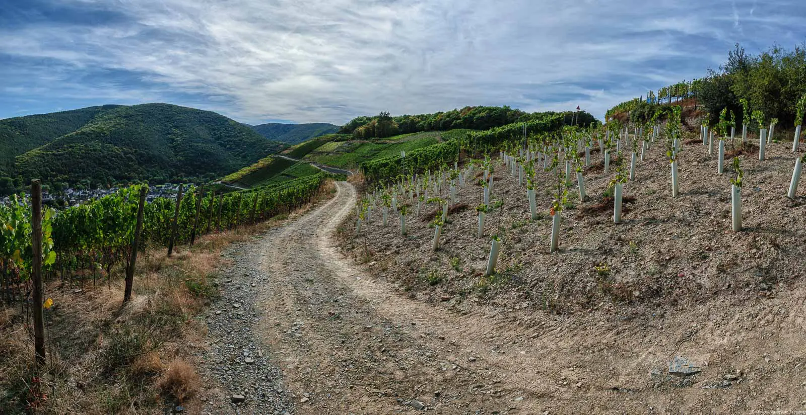 Auf den hochgelegenen Parzellen finden sich etwas kühlere Bedingungen hervor. Die geringere Neigung der meisten Bereiche sorgt ebenfalls dafür, dass sich die Wärme nicht so sehr bündelt, gerade dann, wenn man an die steilen Hängen weiter unten im Tal denkt. Dadurch reifen die Trauben im Weinberg langsamer und die Weine fallen etwas leichter aus. Daher eignen sich die Anlagen auf dem Berg besser für schnell reifende Rebsorten wie z.B. den Frühburgunder, Regent oder Dornfelder. Auch der Ahr-Klassiker Spätburgunder wird dort gepflanzt.