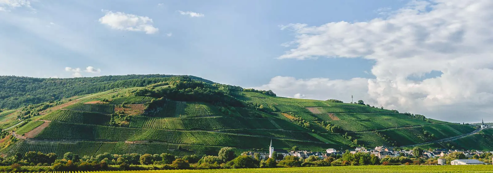 Auf dem Bild oben erkennt man links vom Ort die Top-Parzellen des Kestener Paulinsberges. Sie sind größtenteils nach Südosten ausgerichtet und liegen am Ufer der Mosel. Dadurch können die Reflexionen der Mosel tagsüber zu erhöhten Temperaturen und Reife-Bedingungen im Weinberg führen.